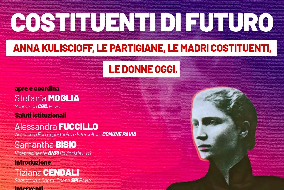 La segretaria confederale della Cgil Lara Ghiglione concluderà l’iniziativa ‘Costituenti di futuro. Anna Kuliscioff, le partigiane, le madri costituenti, le donne di oggi’. Appuntamento giovedì 19 marzo a Pavia presso la sala dell’Annunciata in Piazza Petrarca n.3, ore 9.30.