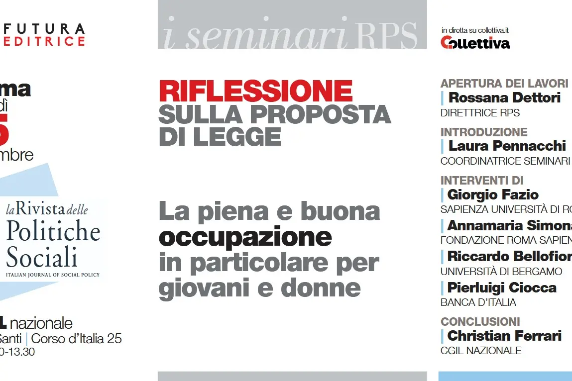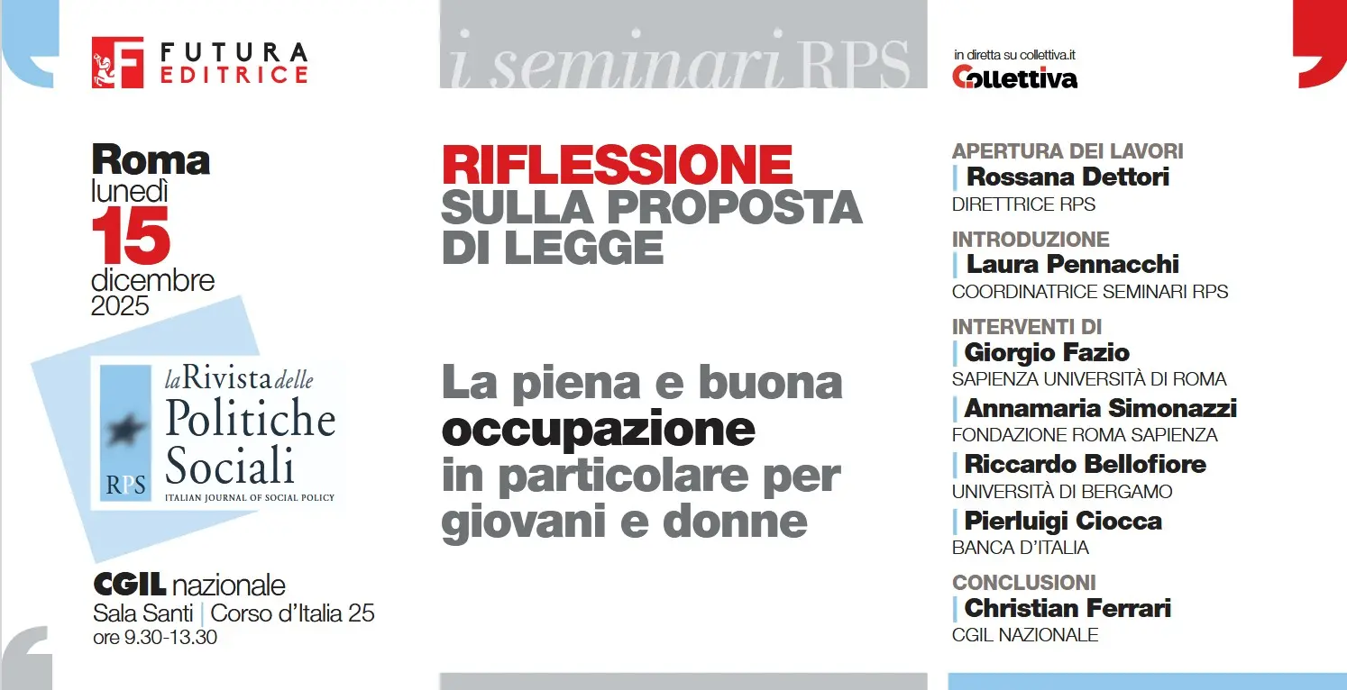Il segretario confederale della Cgil Christian Ferrari interverrà al seminario della Rivista delle Politiche Sociali ‘Riflessione sulla proposta di legge. La piena e buona occupazione in particolare per giovani e donne’.