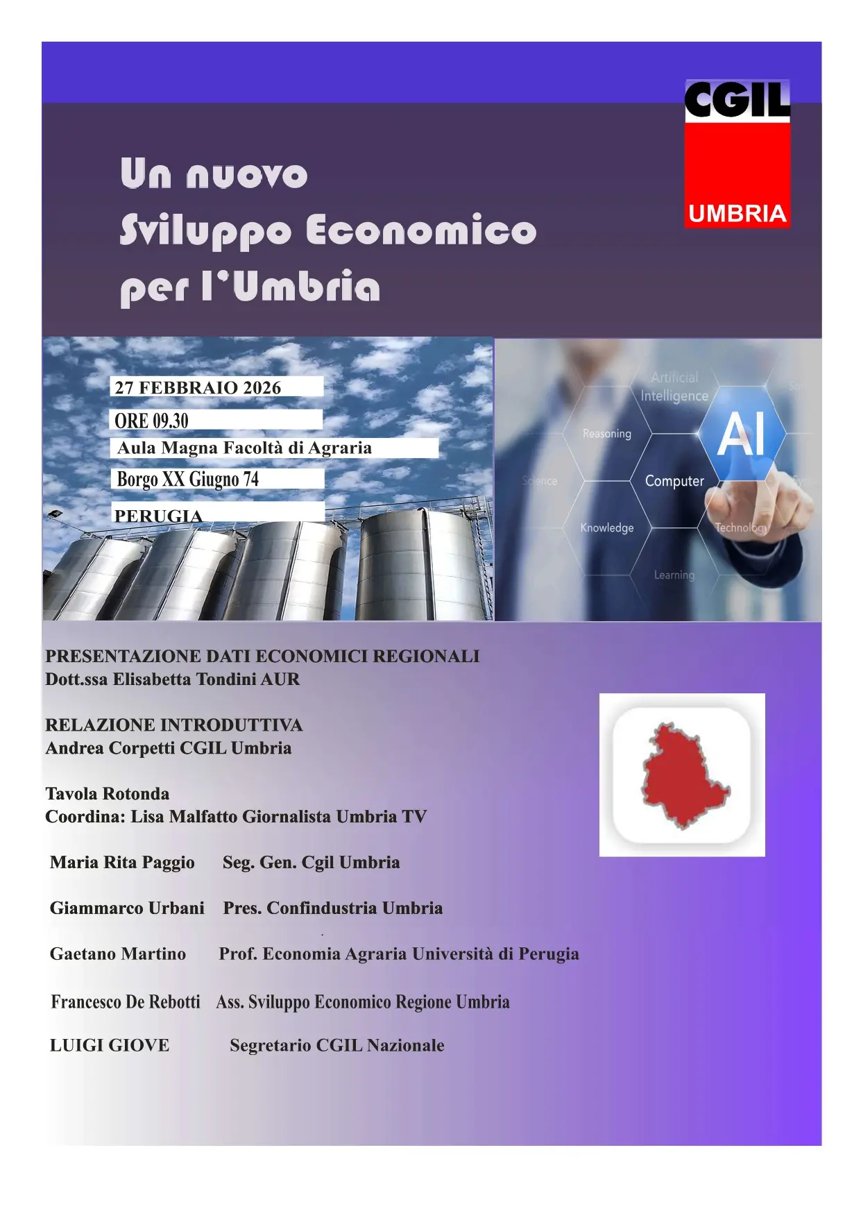 Il segretario confederale della Cgil Luigi Giove concluderà l’iniziativa promossa dalla Cgil Umbria ‘Un nuovo sviluppo economico per l’Umbria’. Appuntamento venerdì 27 febbraio a Perugia presso l’Aula Magna della Facoltà di Agraria, Borgo XX giugno 74, ore 9.30.