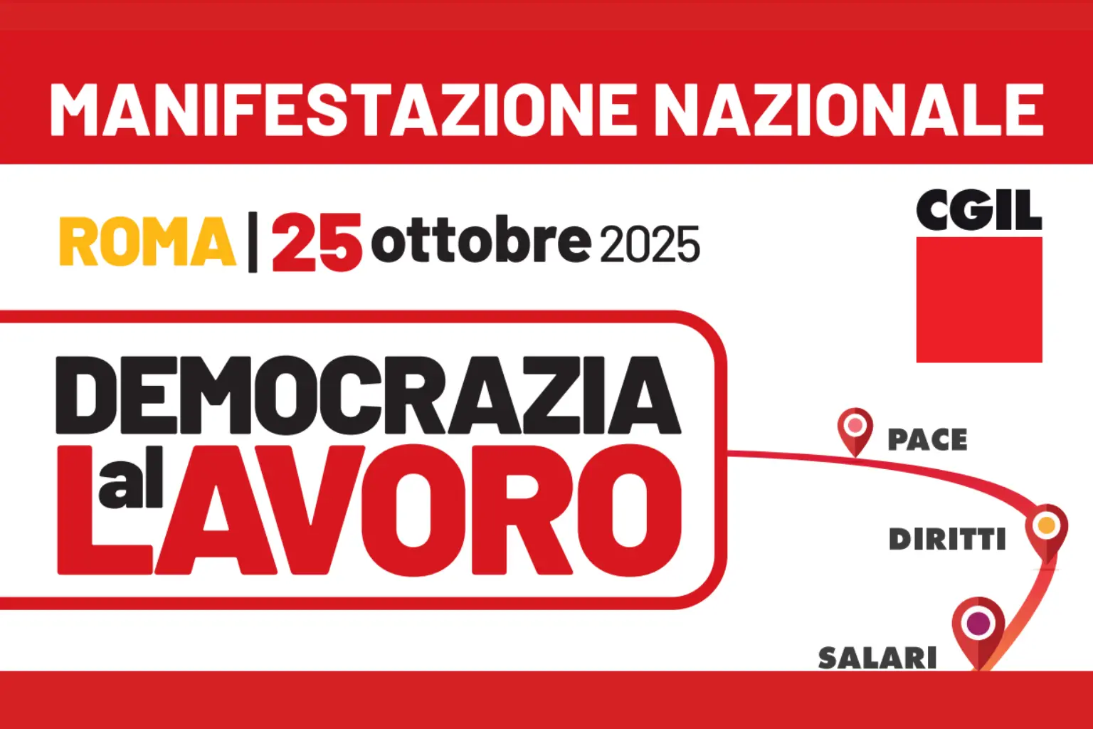 Sabato 25 ottobre 2025 la CGIL chiama lavoratori e lavoratrici, pensionate e pensionati, giovani, cittadine e cittadini a partecipare alla grande manifestazione nazionale “Democrazia al lavoro”.