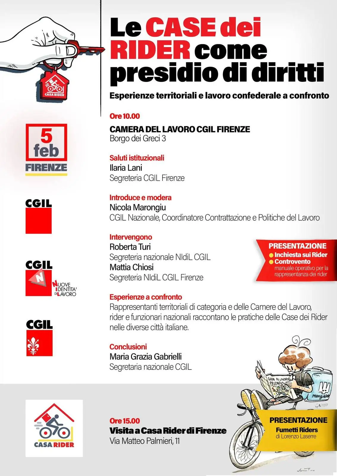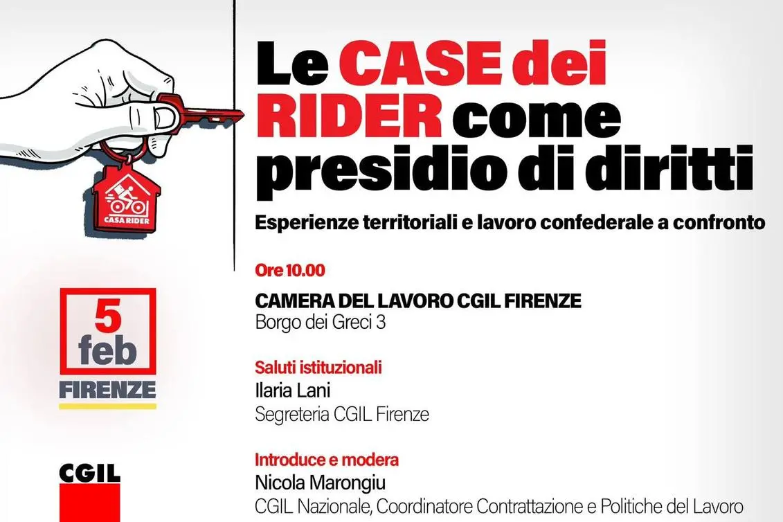 La segretaria confederale della Cgil Maria Grazia Gabrielli concluderà l’iniziativa promossa dalla Cgil e dal NIdiL Cgil ‘Le case dei rider come presidio di diritti’. Una giornata dedicata alla valorizzazione dell’esperienza delle Case dei Rider, a partire da quella di Firenze, che sarà al tempo stesso un momento di confronto e di approfondimento sullo stato dell’iniziativa sindacale nel settore del food delivery, alla luce delle attività svolte, delle vertenze aperte e delle prospettive di lavoro future. Appuntamento giovedì 5 febbraio a Firenze presso la Camera del Lavoro, Borgo dei Greci n.3, ore 10.00.