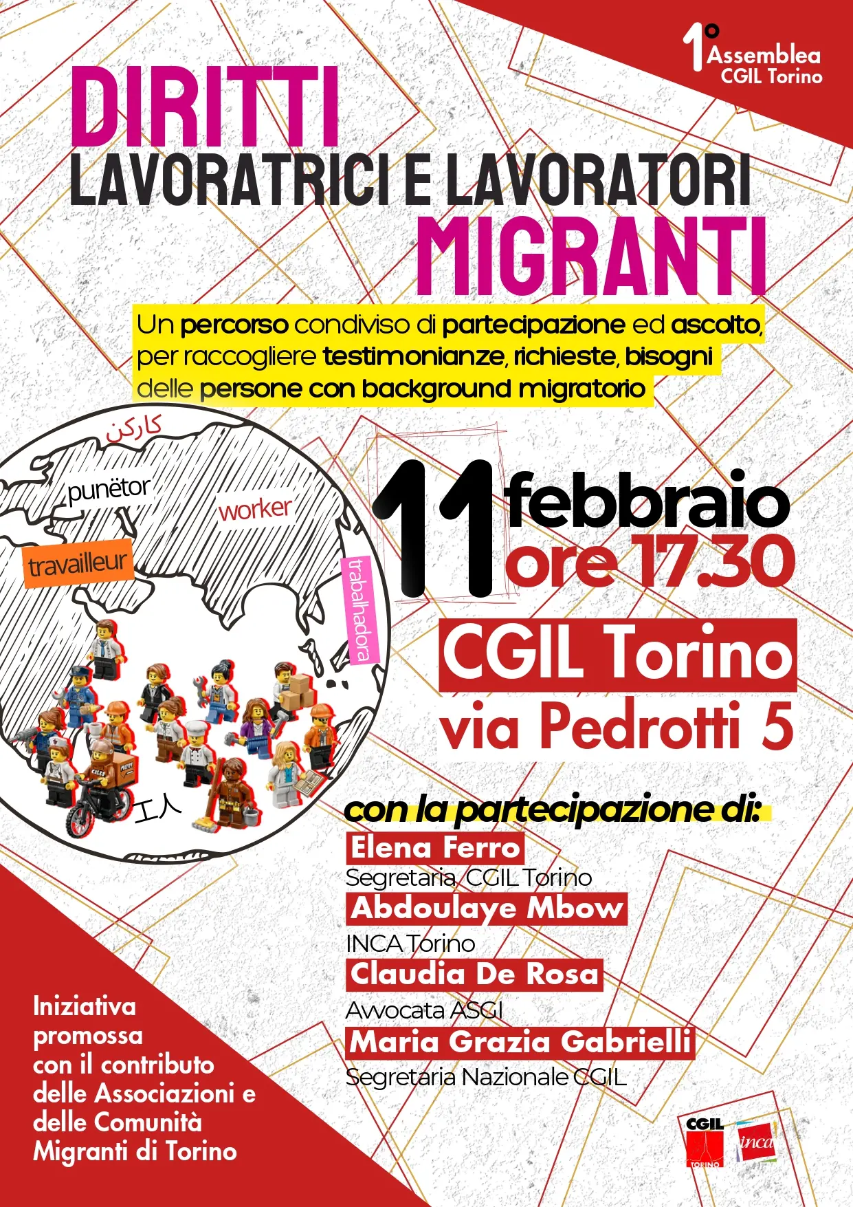 La segretaria confederale della Cgil Maria Grazia Gabrielli all’assemblea promossa dalla Cgil Torino e Inca ‘Diritti lavoratrici e lavoratori migranti’, un percorso condiviso di partecipazione ed ascolto, per raccogliere testimonianze, richieste, bisogni delle persone con background migratorio. Appuntamento a Torino mercoledì 11 febbraio presso la Cgil di Torino, via Pedrotti n.5, ore 17.30.