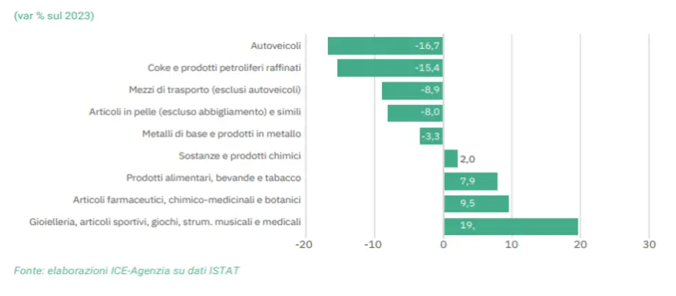 L’export italiano anno 2024 - l’industria in caduta - (Fonte Ice)