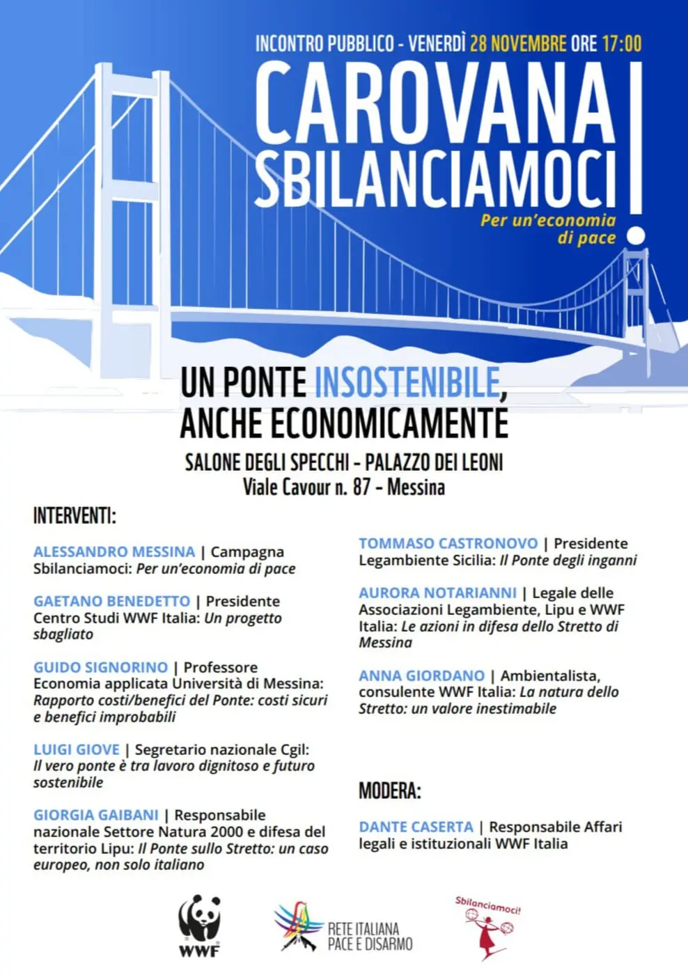 Il segretario confederale della Cgil Luigi Giove interverrà all’iniziativa pubblica ‘Carovana Sbilanciamoci! Per un’economia di Pace – Un ponte insostenibile, anche economicamente’. Appuntamento venerdì 28 novembre a Messina presso il Salone degli Specchi, Palazzo dei Leoni in Viale Cavour n.87, ore 17.00.