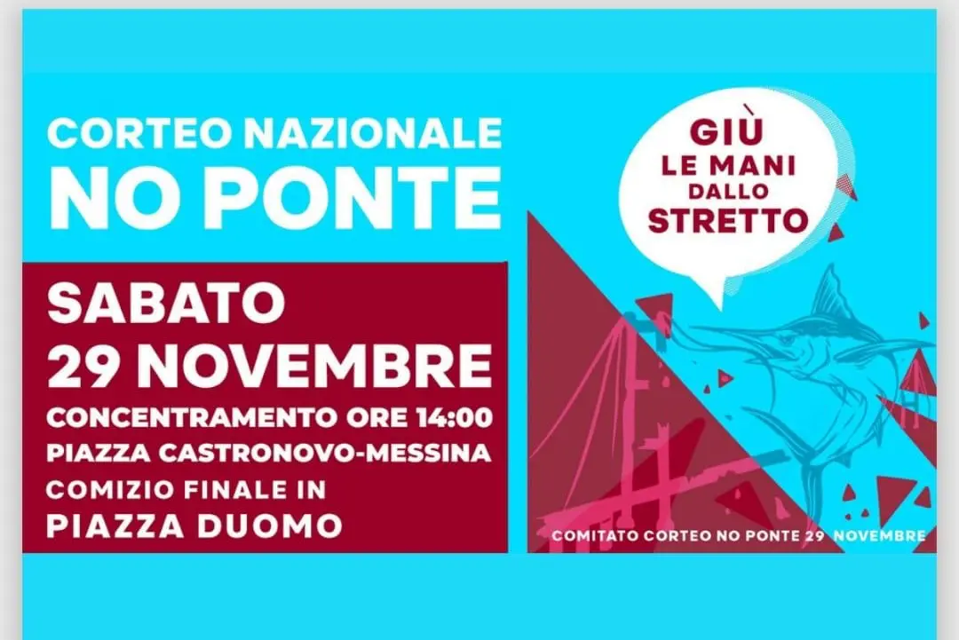 Il segretario confederale della Cgil Luigi Giove parteciperà al corteo nazionale ‘NO PONTE. Giù le mani dallo Stretto’. Concentramento in Piazza Castronovo a Messina sabato 29 novembre, ore 14.00, corteo in via Garibaldi e in via Primo Settembre, comizio finale in Piazza Duomo.