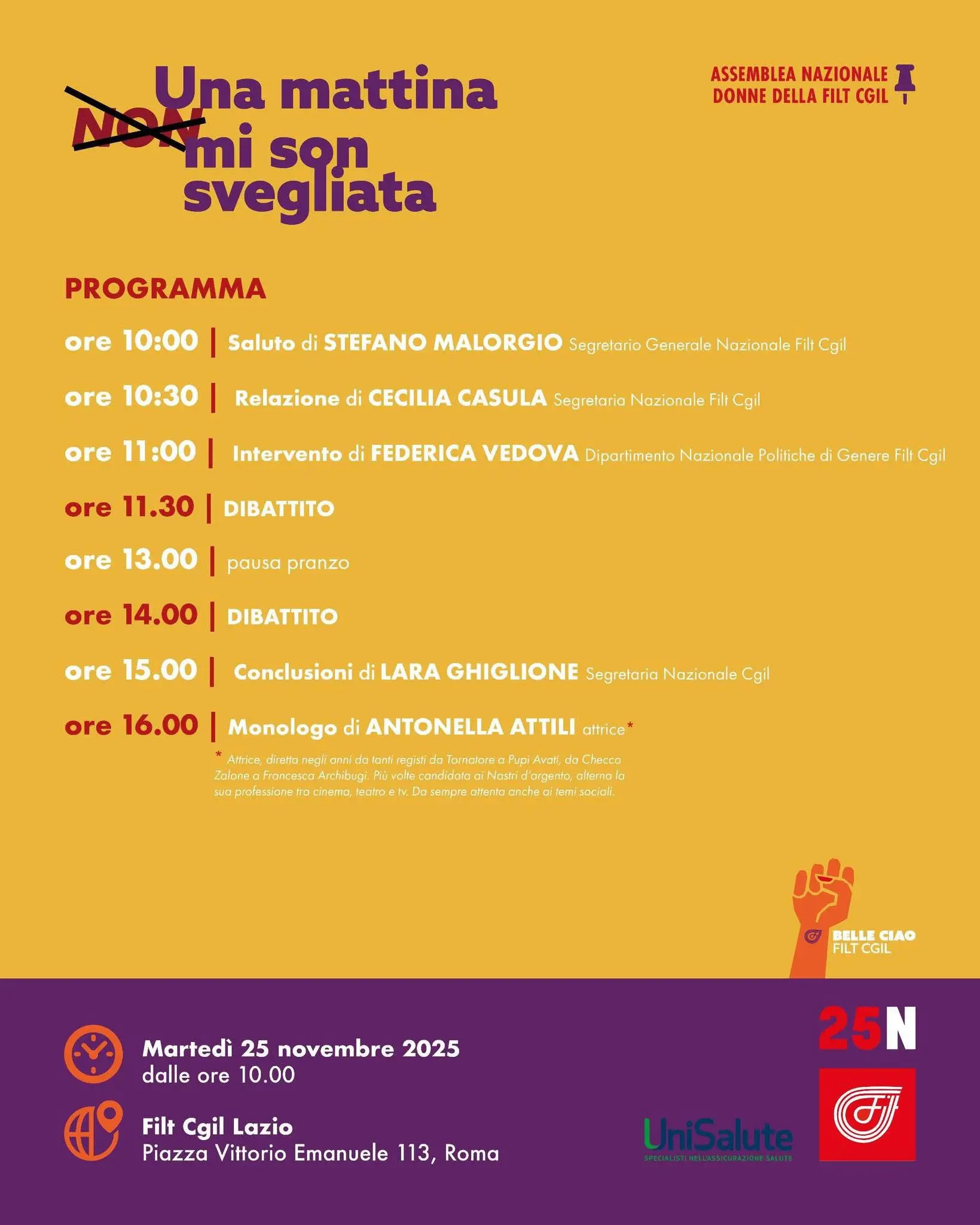 delegate, funzionarie, segretarie della Filt, provenienti da tutti i territori. L’evento si concluderà con la segretaria confederale Lara Ghiglione e con il monologo dell’attrice Antonella Attili. Appuntamento martedì 25 novembre a Roma, presso la