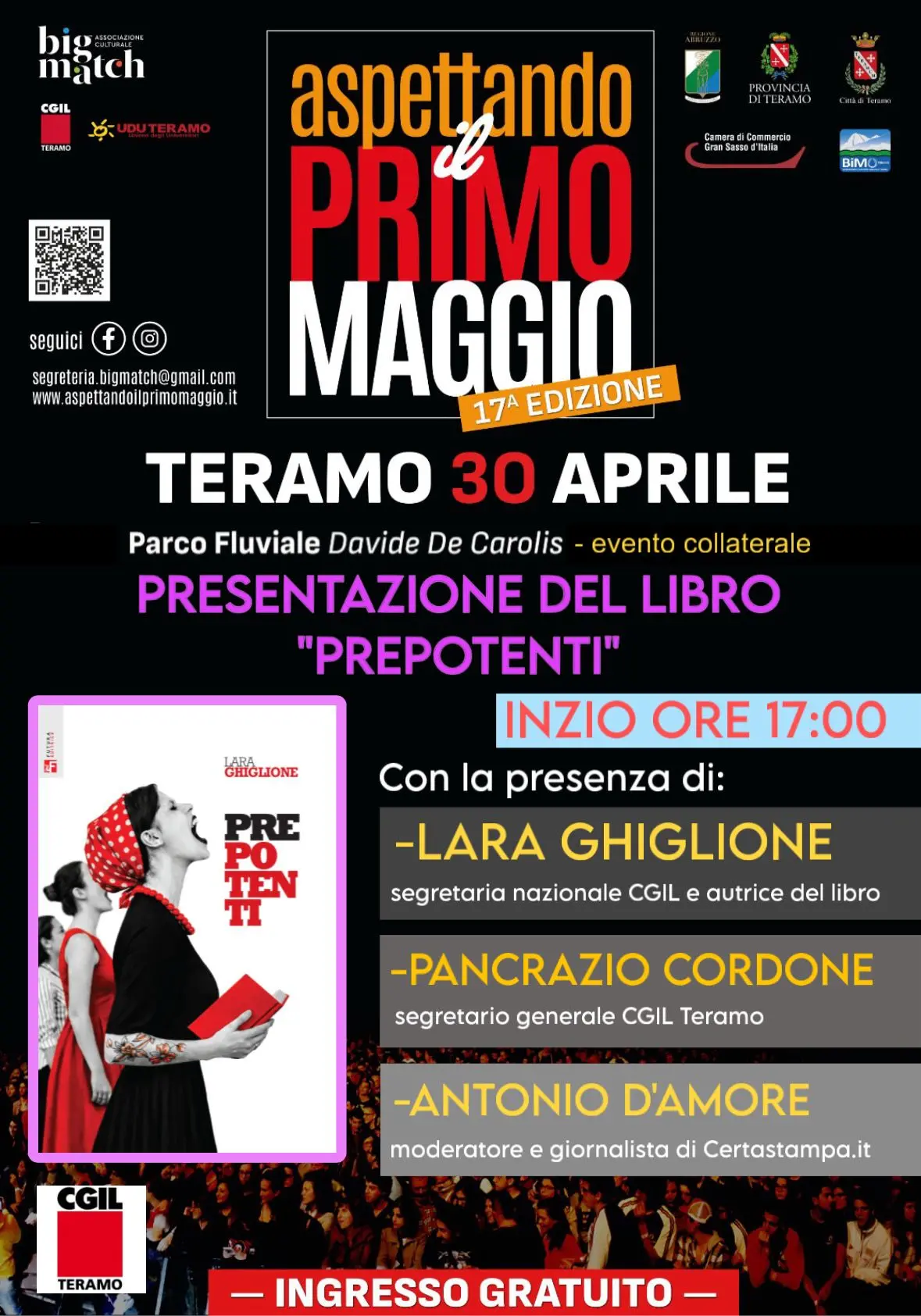 Presentazione del libro ‘Prepotenti’ PHOTOLa segretaria confederale della Cgil Lara Ghiglione presenterà il libro ‘Prepotenti’, di cui è autrice, a Teramo giovedì 30 aprile presso il Parco Fluviale Davide De Carolis nell’ambito della 17^ edizione di ‘Aspettando il Primo Maggio’.