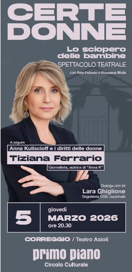 La segretaria confederale della Cgil Lara Ghiglione interverrà al dibattito ‘Anna Kuliscioff e i diritti delle donne’ insieme a Tiziana Ferrario, giornalista e autrice di ‘Anna K’. Appuntamento giovedì 5 marzo a Correggio presso il Teatro Asioli, ore 20.30.