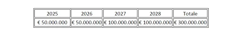 Le risorse pari a 300 milioni di euro provengono dal Fondo Sviluppo e Coesione (FSC) e sono imputate al bilancio dello Stato, secondo la seguente articolazione per annualità (delibera 81/24 del Comitato interministeriale per la programmazione economica e lo sviluppo sostenibile, CIPESS):