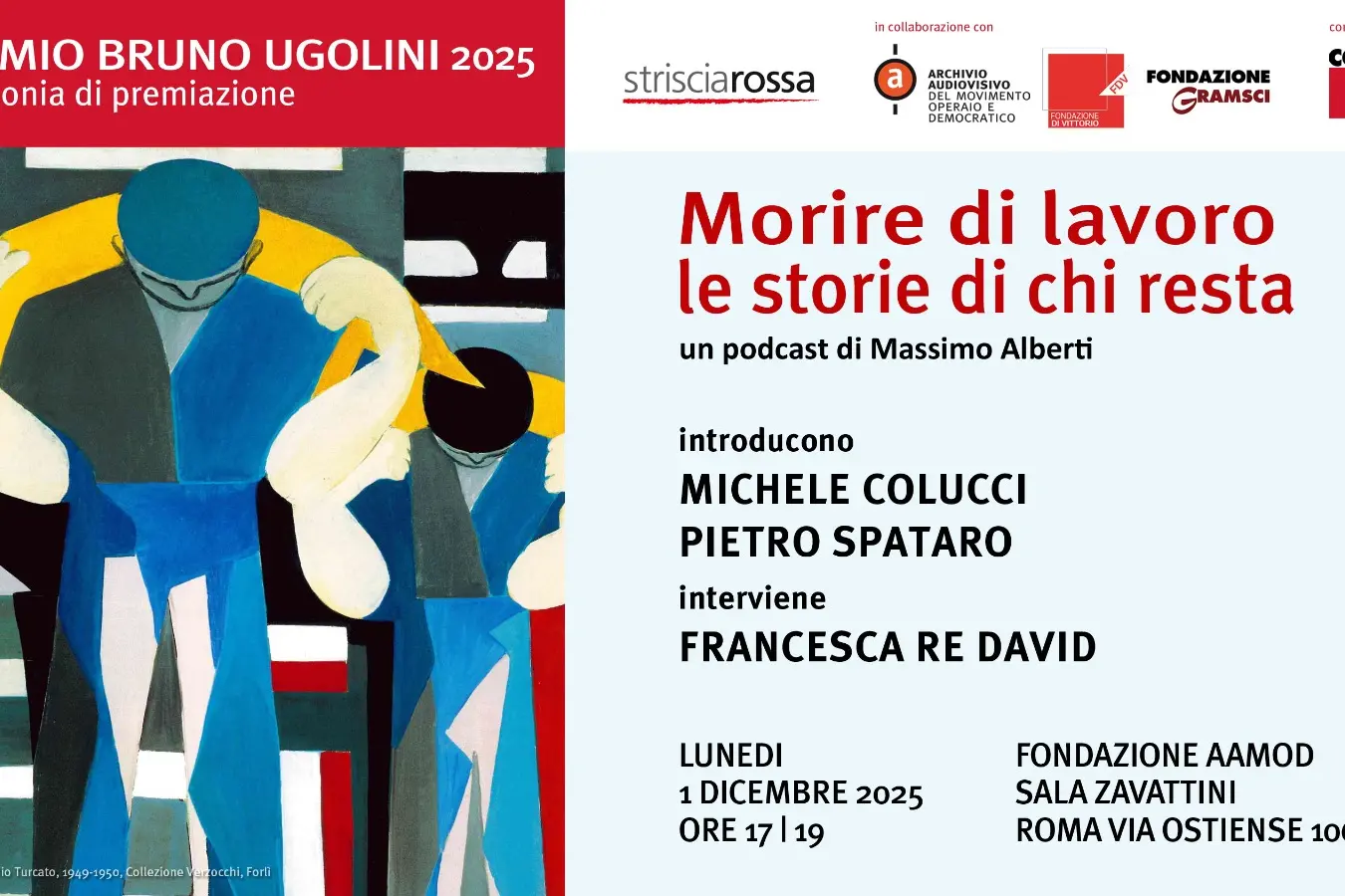 La segretaria confederale della Cgil Francesca Re David interverrà alla cerimonia di premiazione del Premio Bruno Ugolini 2025 “Morire di lavoro, le storie di chi resta”. Appuntamento a Roma lunedì 1 dicembre presso la Fondazione AAMOD, sala Zavattini in Via Ostiense n.106, ore 17.00.