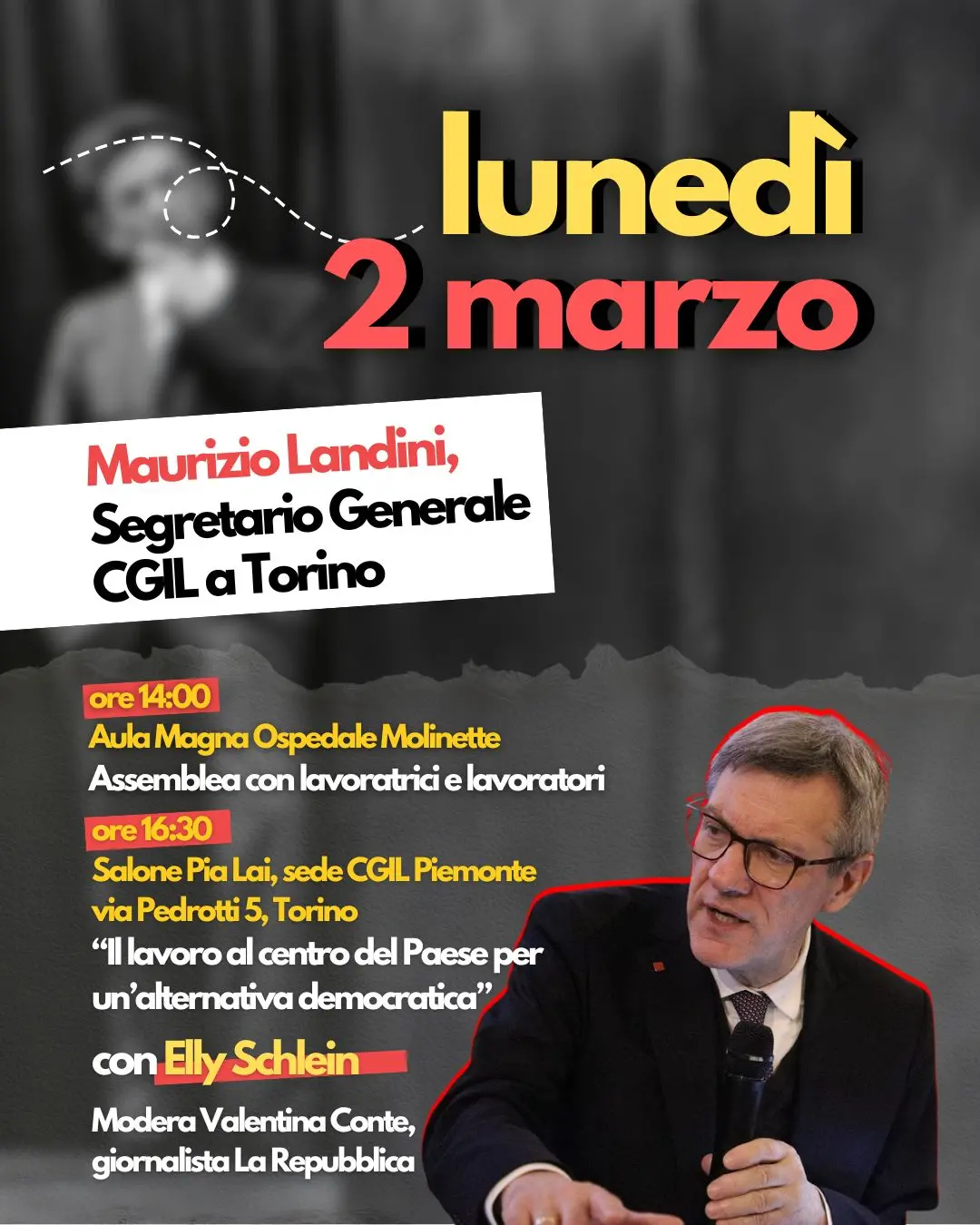 Il segretario generale della Cgil Maurizio Landini nell’ambito di ‘Fuori luoghi’ eventi intorno alla mostra su Berlinguer interverrà al dibattito “Il lavoro al centro del Paese per un’alternativa democratica”. Appuntamento lunedì 2 marzo a Torino presso il salone ‘Pia Lai’ della Cgil Piemonte in via Pedrotti n.5, ore 16.30. Per informazioni clicca qui