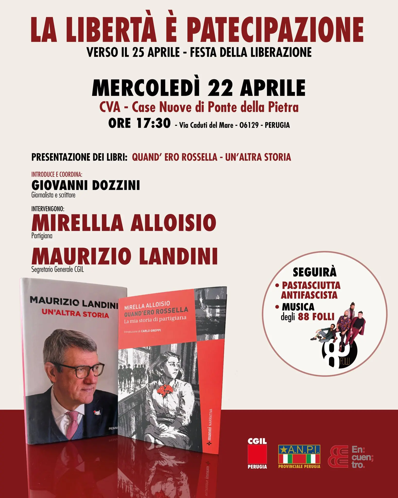 Il segretario generale della Cgil Maurizio Landini interverrà all’iniziativa in vista del 25 aprile ‘La libertà è partecipazione’. Appuntamento a Perugia mercoledì 22 aprile, presso CVA Case nuove di Ponte della Pietra, via Caduti del Mare, ore 17.30.