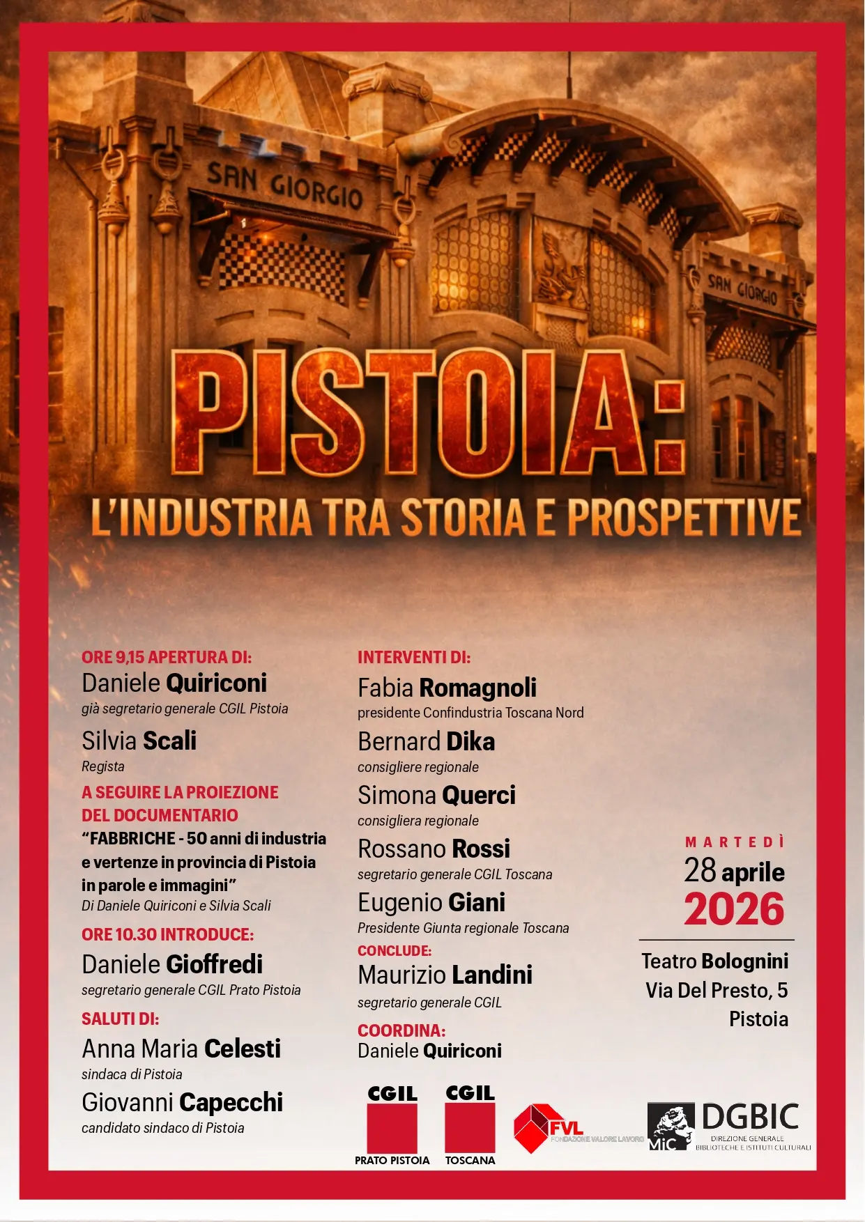 Il segretario generale della Cgil Maurizio Landini concluderà l’iniziativa ‘Pistoia: l’industria tra storia e prospettive’ promossa dalla Cgil Toscana e dalla Cgil Prato Pistoia. Appuntamento martedì 28 aprile presso il Teatro Bolognini