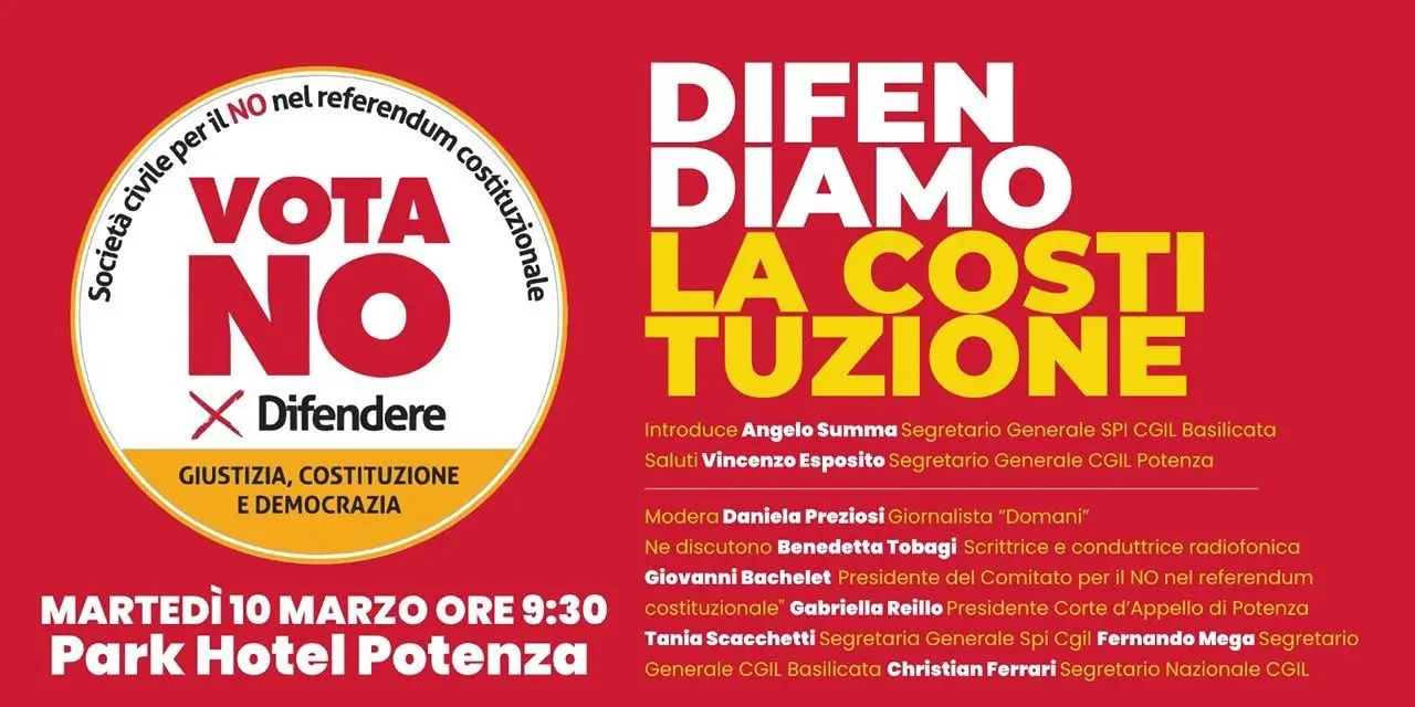 Difendiamo la Costituzione PHOTOIl segretario confederale della Cgil Christian Ferrari interverrà all’iniziativa ‘Difendiamo la Costituzione’ in programma martedì 10 marzo presso Park Hotel Potenza, ore 9.30.