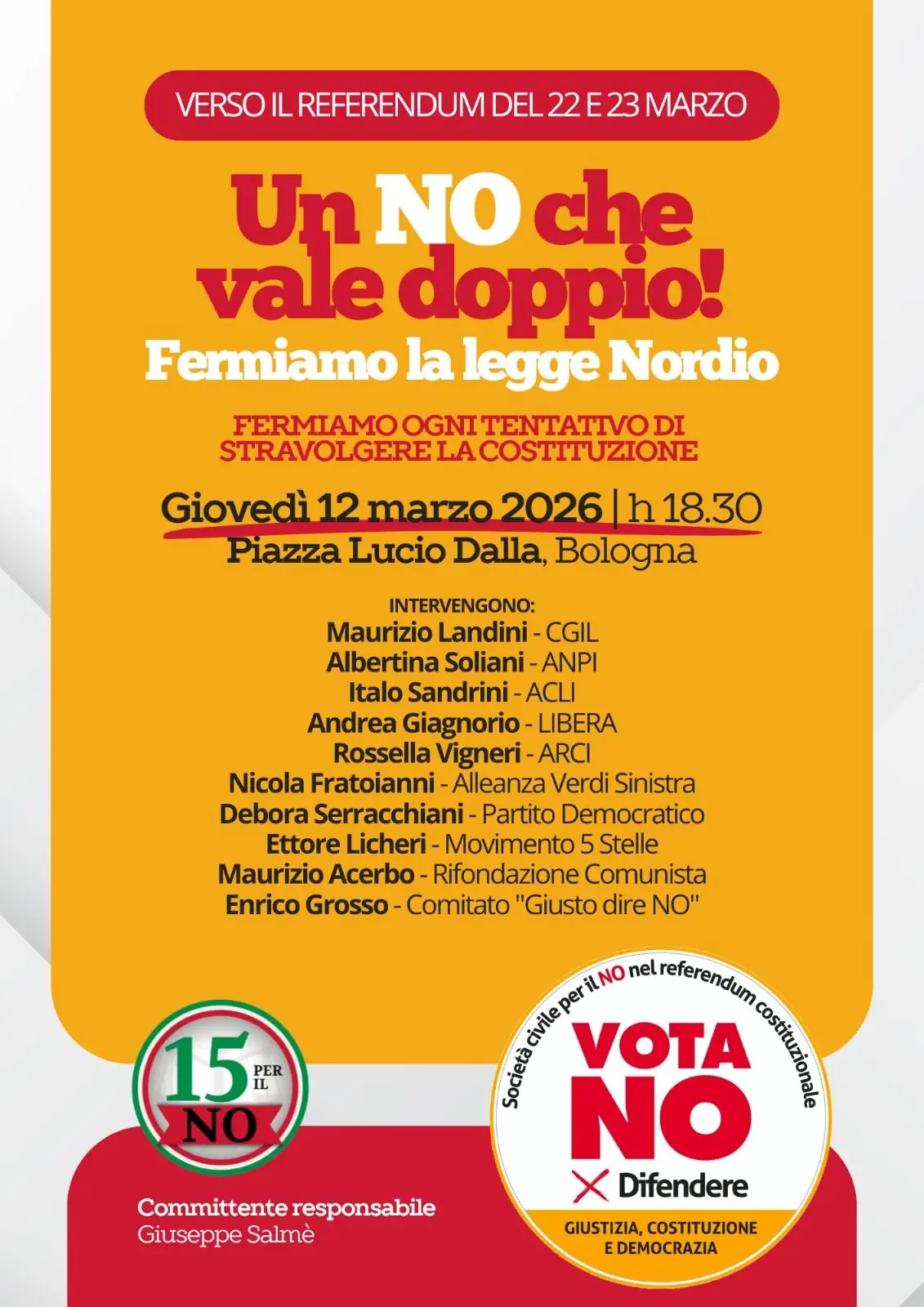 Il segretario generale della Cgil Maurizio Landini interverrà all’evento "Un NO che vale doppio!" in vista del referendum sulla giustizia del prossimo 22 e 23 marzo. Appuntamento a Bologna giovedì 12 marzo in Piazza Lucio Dalla, ore 18.30