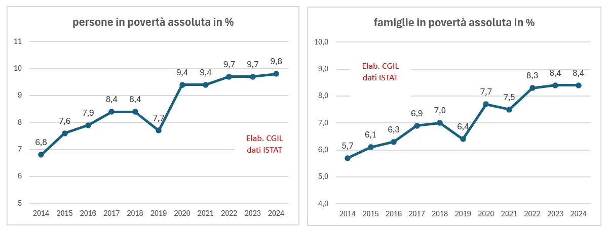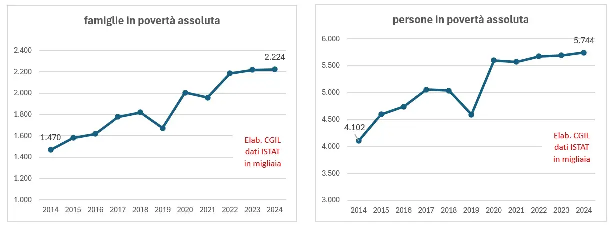"I dati - aggiunge la dirigente sindacale - confermano che si è poveri pur lavorando, con un quarto dei lavoratori dipendenti che può contare su retribuzioni lorde annue inferiori a 10 mila euro, a causa di lavori precari e a tempo parziale. Particolarmente allarmante la povertà minorile, con 1,3 milioni di minori in povertà assoluta e il 6% di minori che vive in famiglie in difficoltà economiche tali da impedire l’acquisto del cibo necessario".
